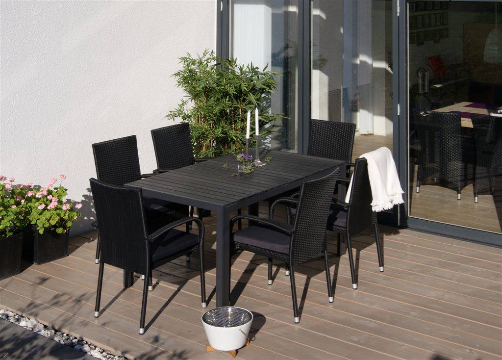 Nieuw in onze tuinmeubelcollectie: deze tuintafel van aluminium en nonwood van 150 x 90 cm. Een prachtige weerbestendige makkelijk te verplaatsen tuintafel voor een vriendenprijs!