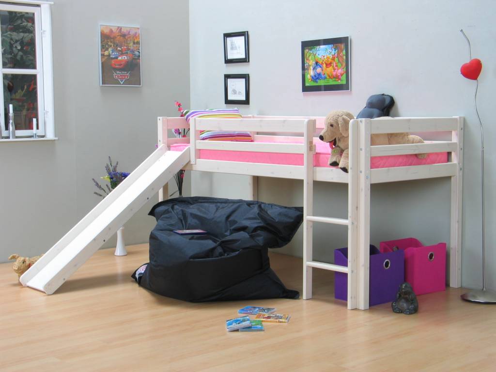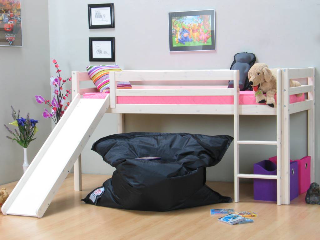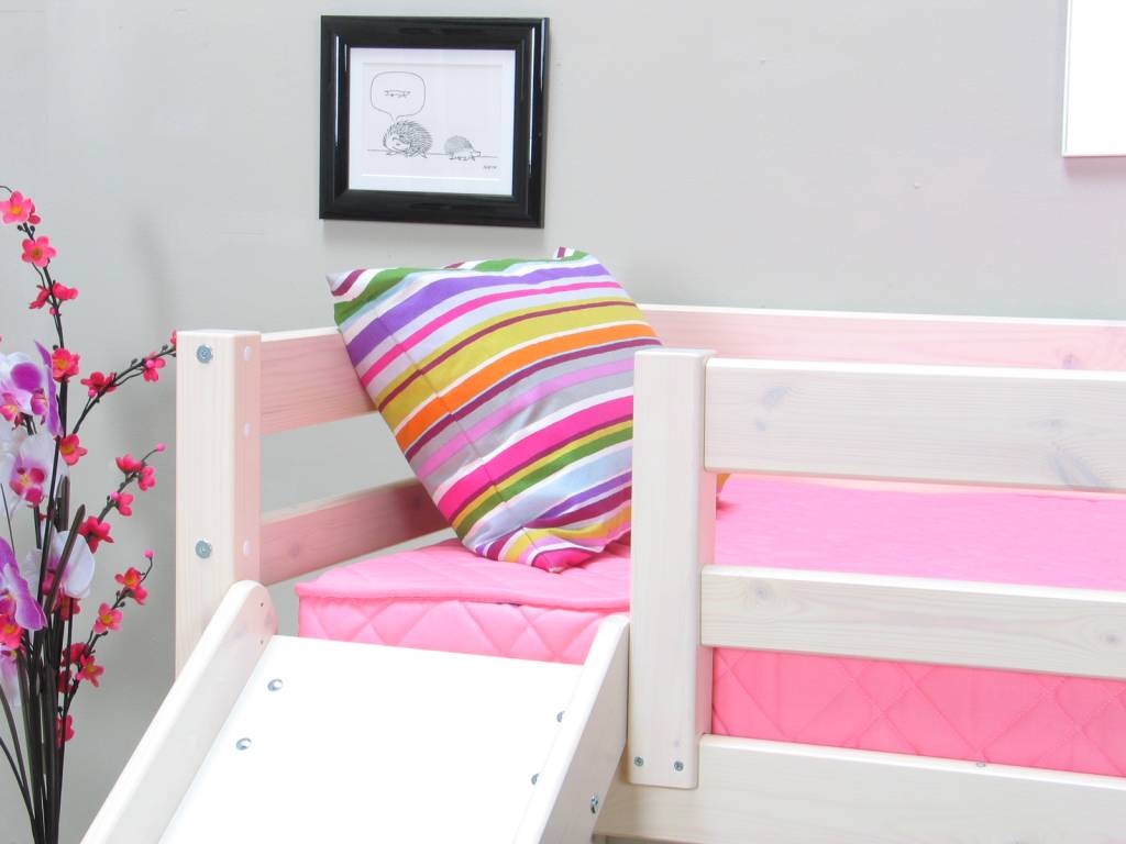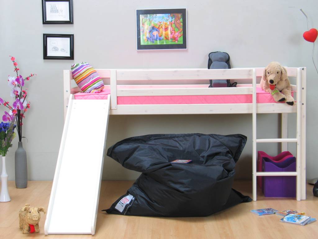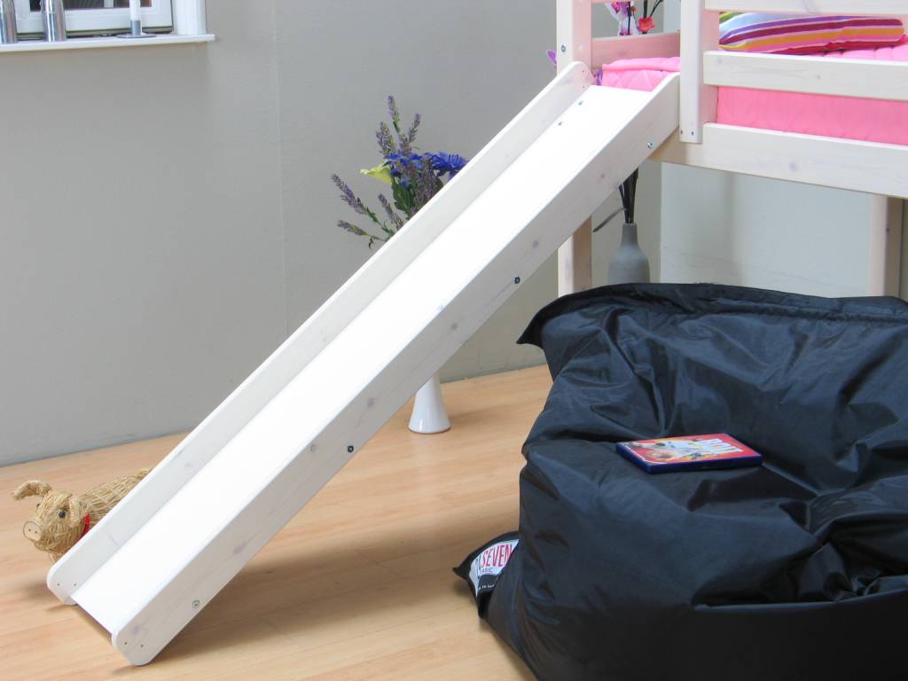 Topkwaliteit halfhoogslaper van massief grenenhout, inclusief glijbaan! Een bed van de Deense kwaliteitsfabrikant Thuka. Matras, op veiligheid geteste lattenbodem en accessoires als te zien op de foto's kunt u ook bijbestellen via onze website!