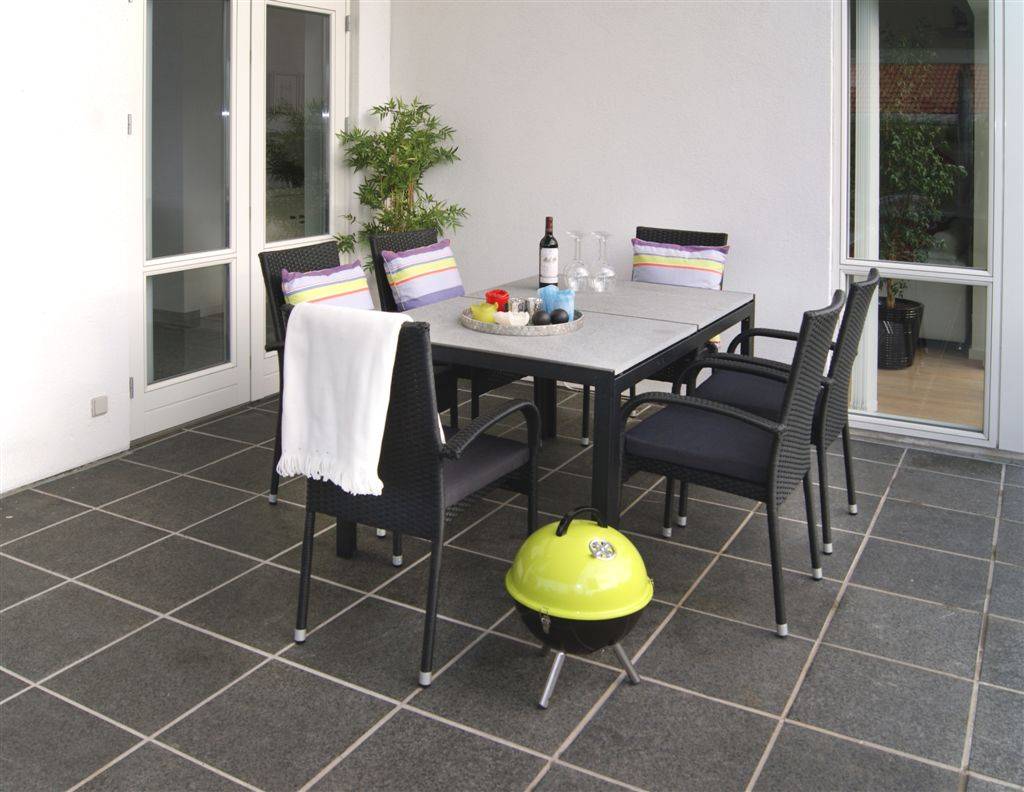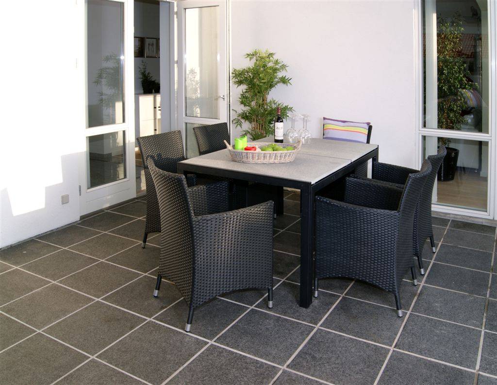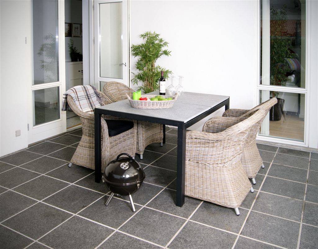 Tuintafel van gegalvaniseerd staal ingelegd met granieten platen. Een prachtige unieke tuintafel met een robuust maar modern uiterlijk. Een mooi formaat tuintafel waar u jaren plezier van kunt hebben!