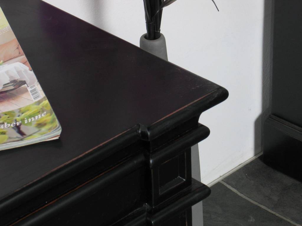 - Massief hout, zwart gelakt, antiek gepatineerd