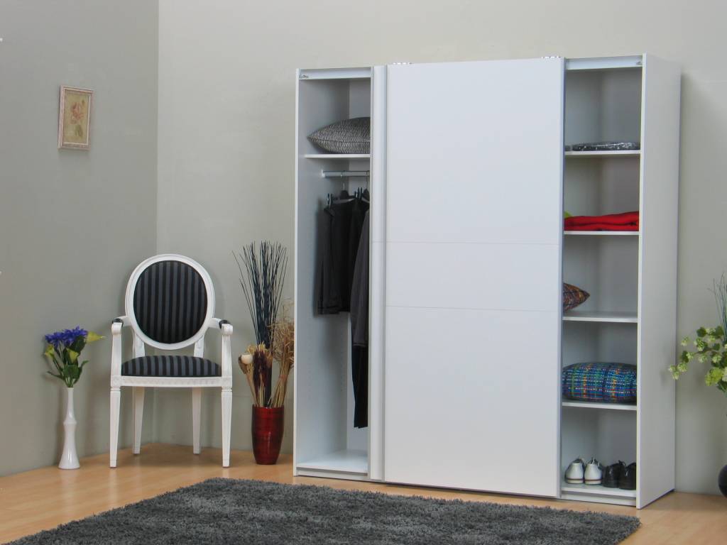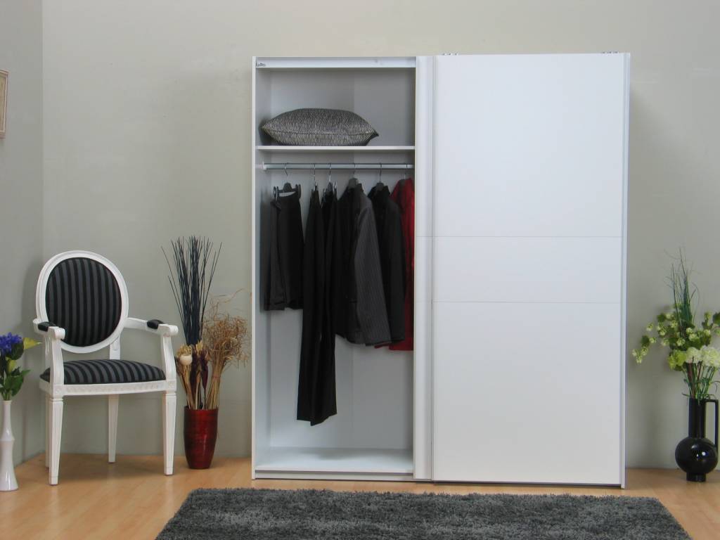 Stevige zweefdeurkast, uitgevoerd in de kleur Wit. Deze praktische kast past perfect in iedere slaapkamer! Nu met gratis pakket met 3 legplanken. Deze kast is ook verkrijgbaar in andere kleuren.