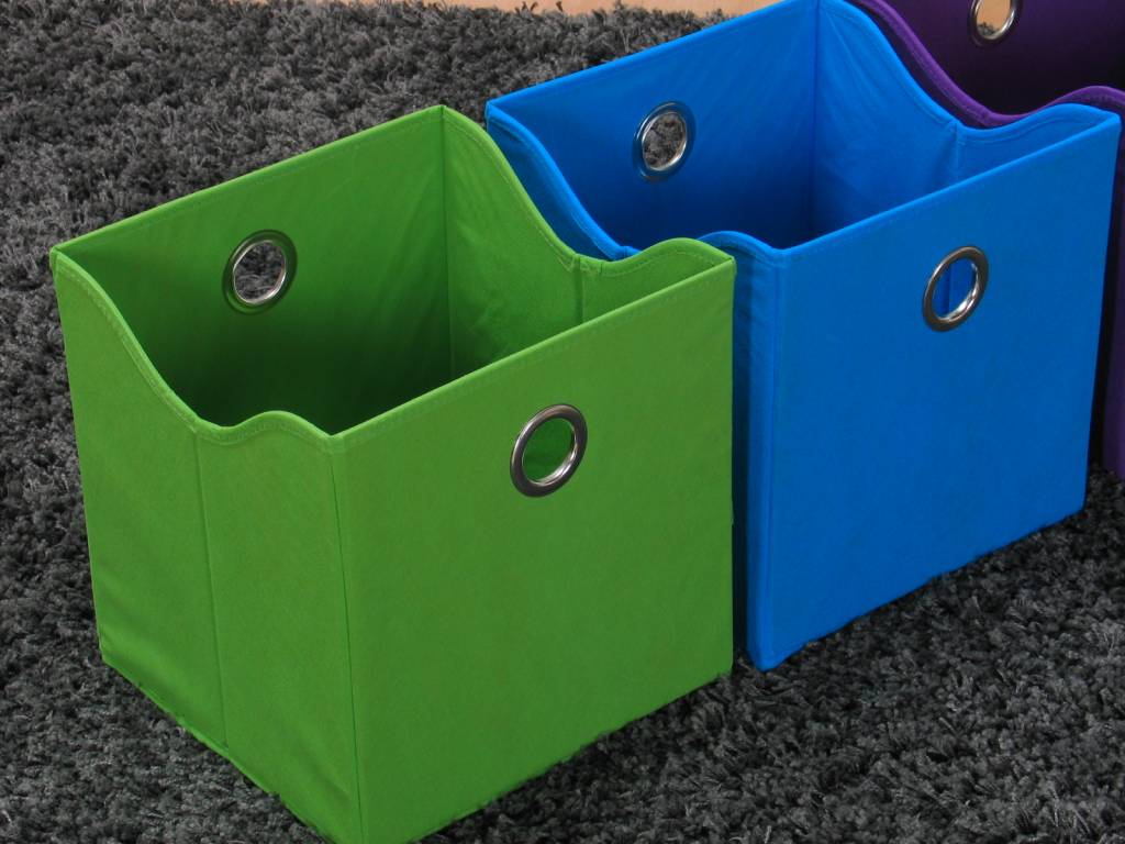 Combee opbergbak van blauw textiel. De box is opvouwbaar en is onder andere te gebruiken met onze meubelen van de serie Combee!