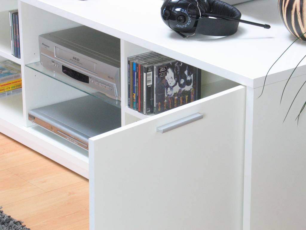 Stijlvol tv meubel Viva van de kwaliteitsfabrikant Tvilum! Een prachtig design tv kast voor uw woonkamer met een open vak met glazen opzetplank in het midden. Goed te combineren met de overige meubels Viva!