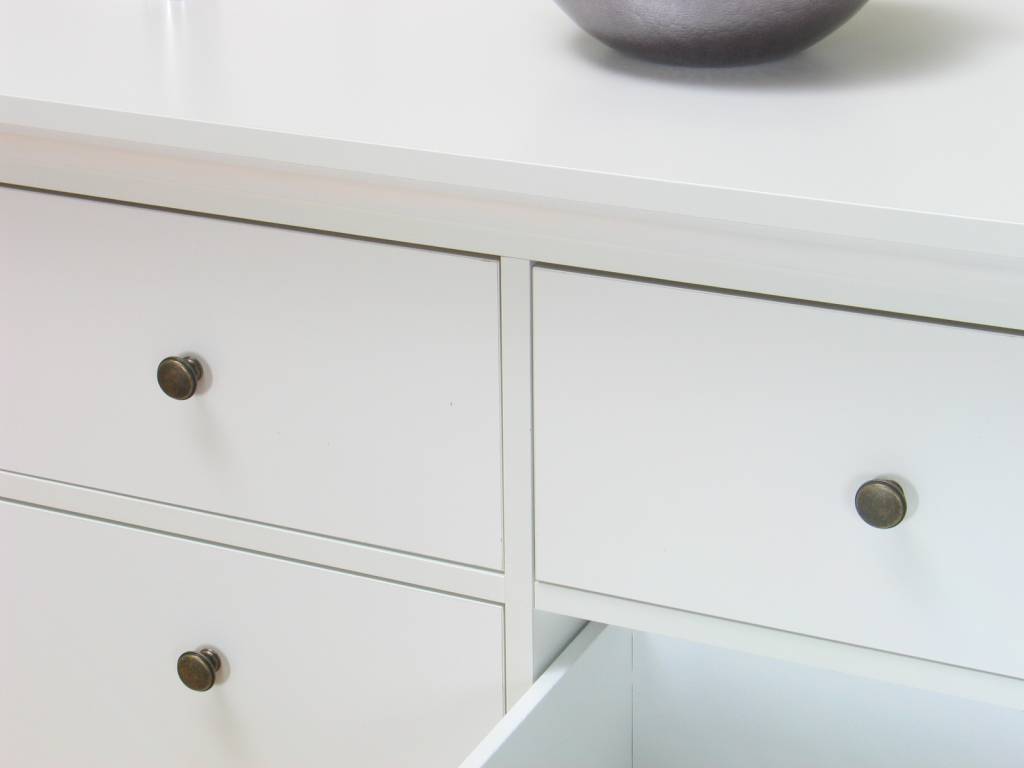 Witte ladenkast uit onze serie Venetië. Dit meubel past goed bij het dressoir en de buffetkast uit dezelfde serie.