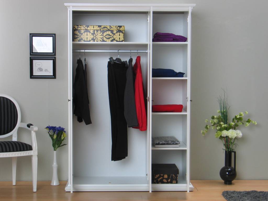 Mooie, stevige driedeurs kledingkast in de serie Venetië. Met 4 planken, een kledingroede en een hoedenplank is dit een topmeubel voor in de slaapkamer! Past goed bij de overige meubels uit de serie Venetië.