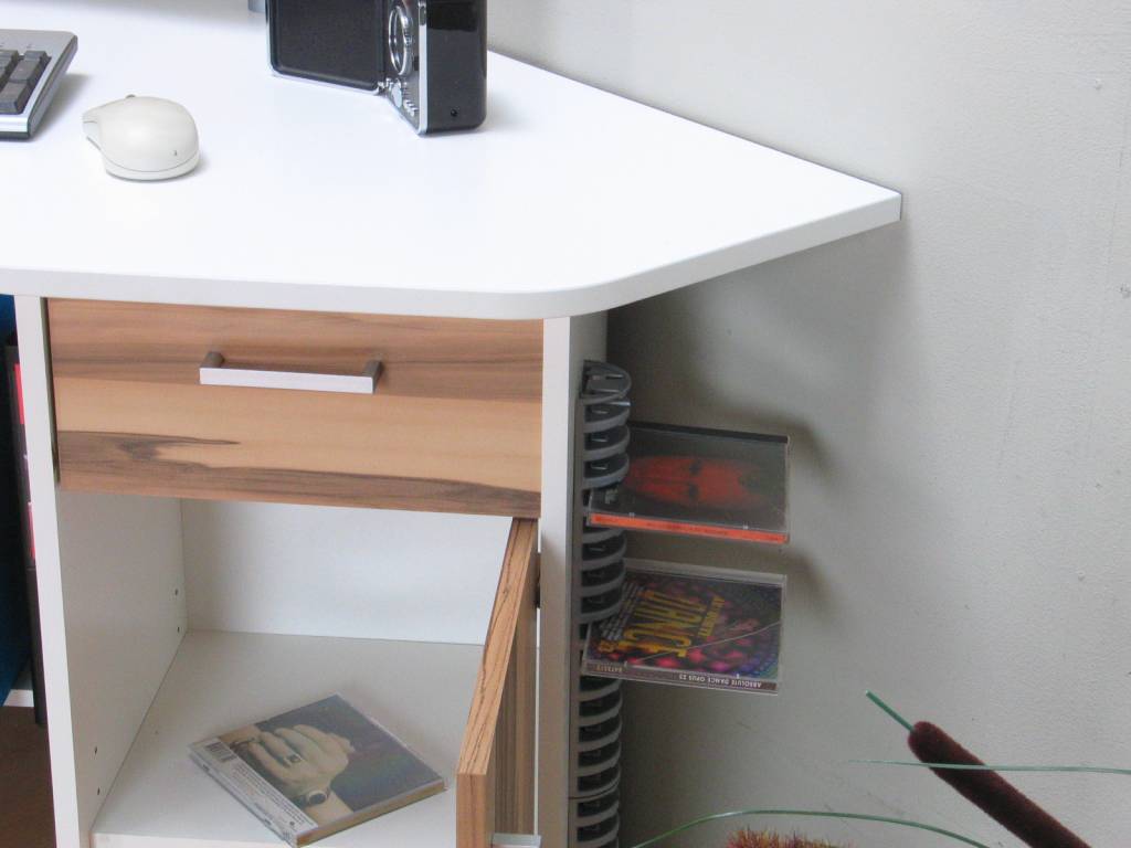 - CD-houder voor 30 cd's (2 stuks; aan zowel de linker- als de rechterkant onder het bureaublad)