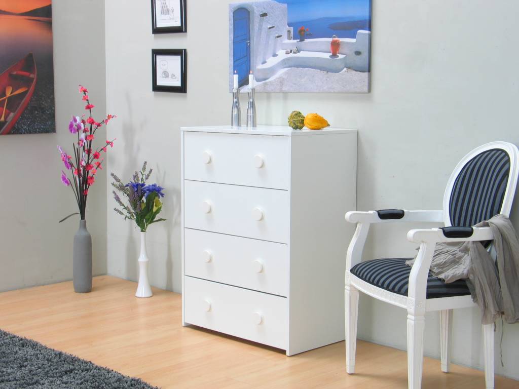 Vermelde prijzen zijn uiteraard inclusief BTW en gelden per omschreven meubel, niet voor eventuele decoraties.Tvilum Kommode wit met 4 laden Combee