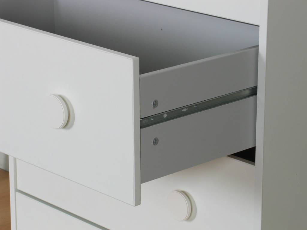 Ladekast Combee met 4 lades. De onderste lade heeft wieltjes. Bovendien worden er handgrepen in 3 kleuren meegeleverd!