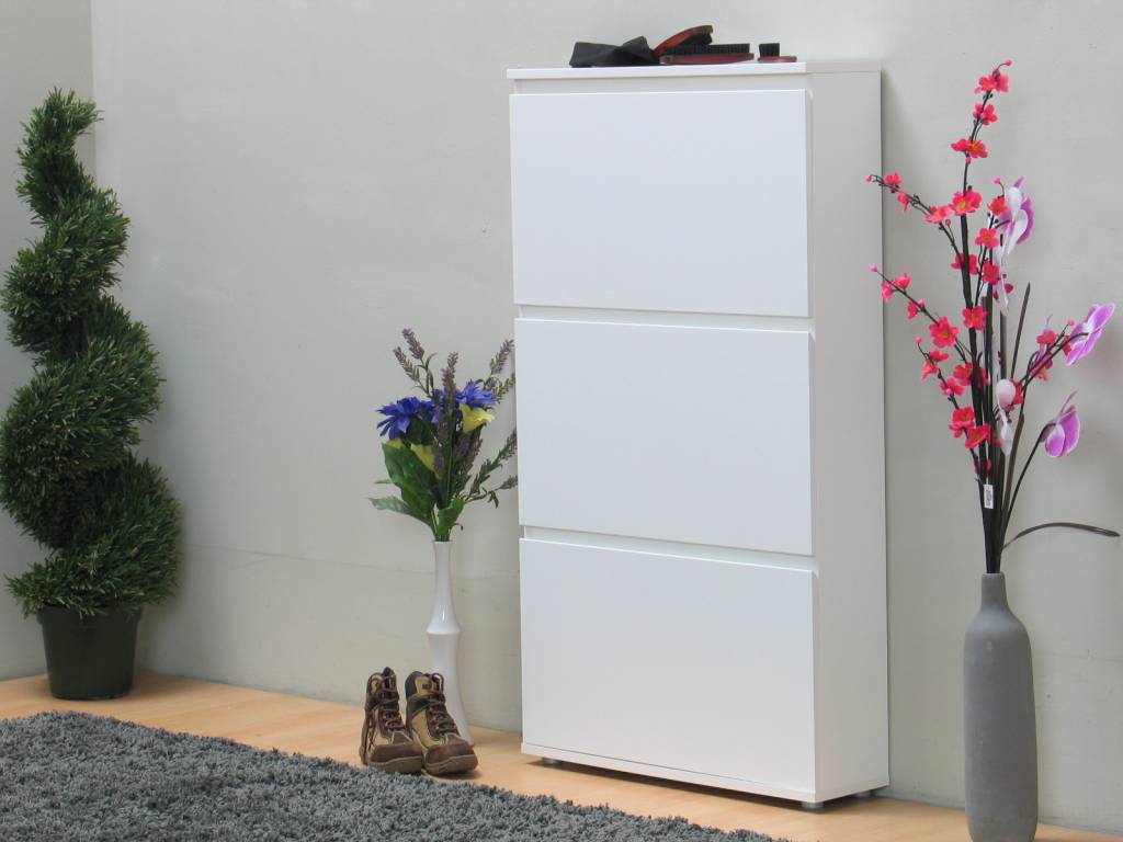 Fijne witte schoenenkast Mia: een handige schoenenkast voor het opbergen van 6 tot 9 paar schoenen.