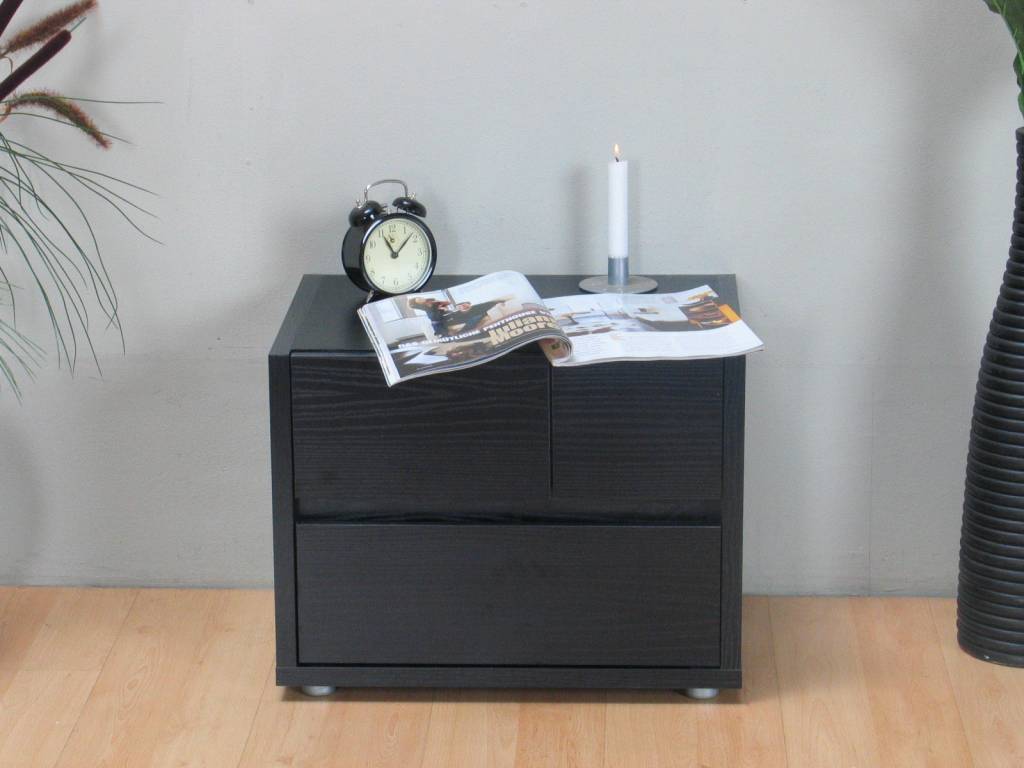 - Zwart essen nachtkastje met 2 lades
