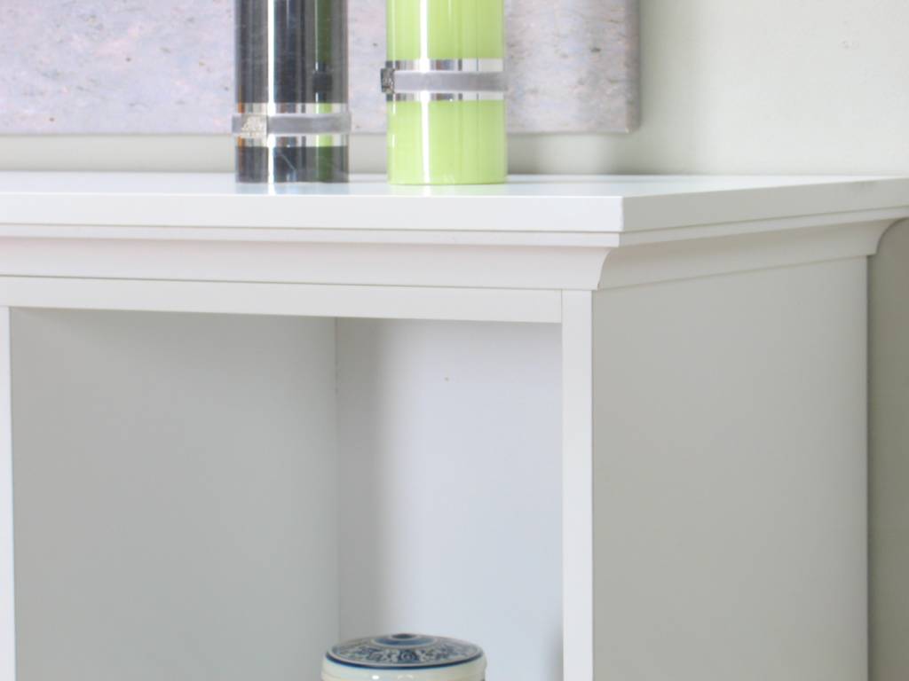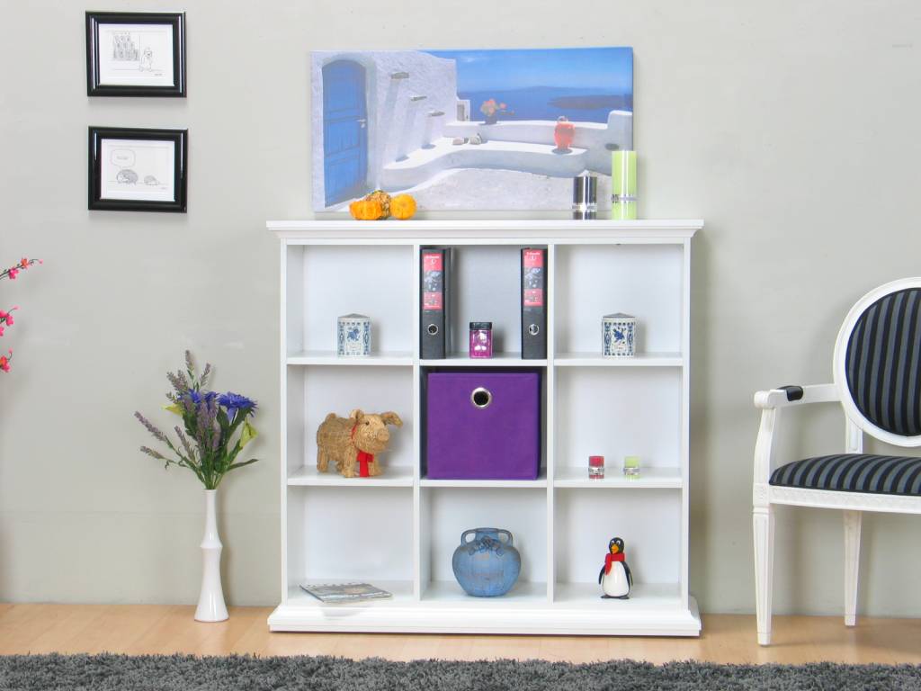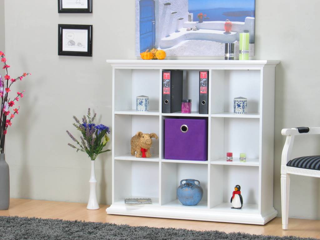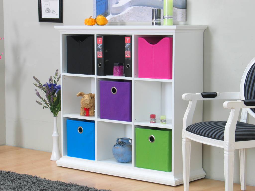 Witte ruimtedeler Venetië: een ideaal opbergmeubel! De Combee-opbergdozen die op de foto zijn afgebeeld zijn bij te bestellen. Bovendien past het meubel goed bij de overige Venetië-artikelen!