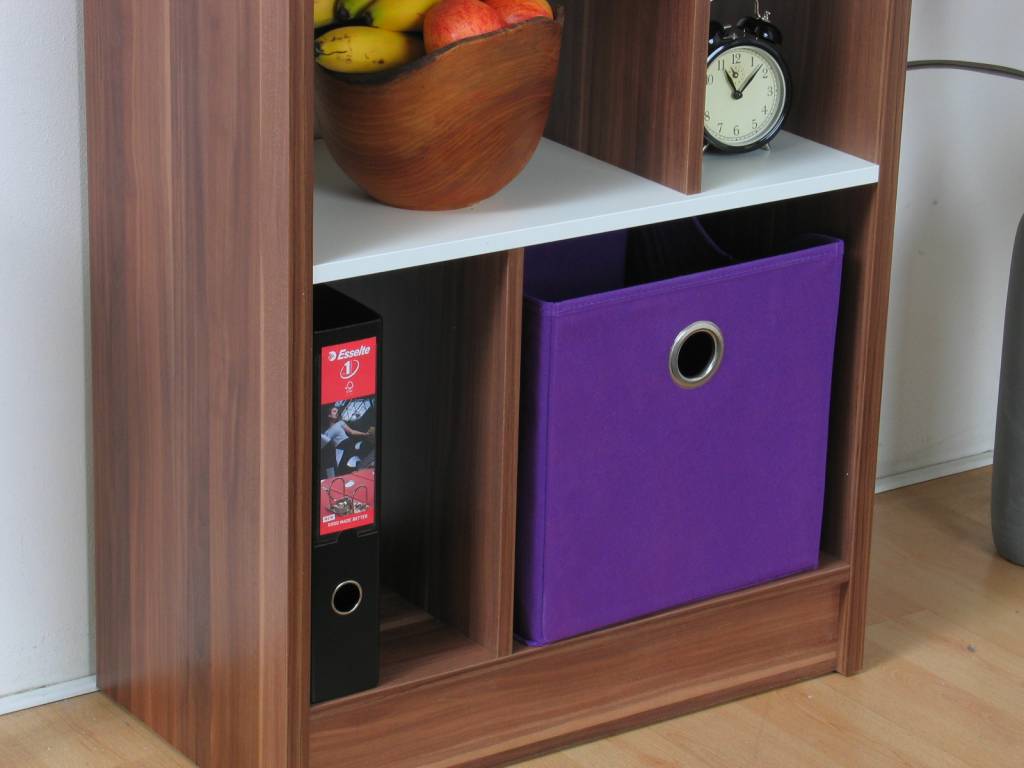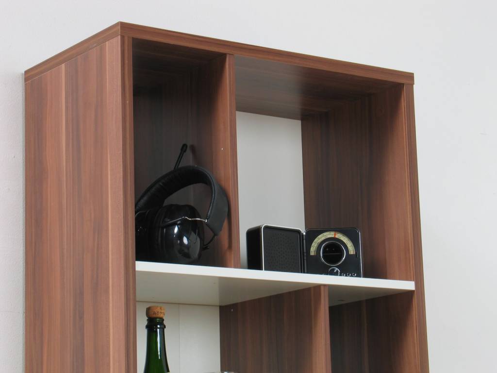 - Pruimhout kleurige opberg-/boekenkast met witte planken