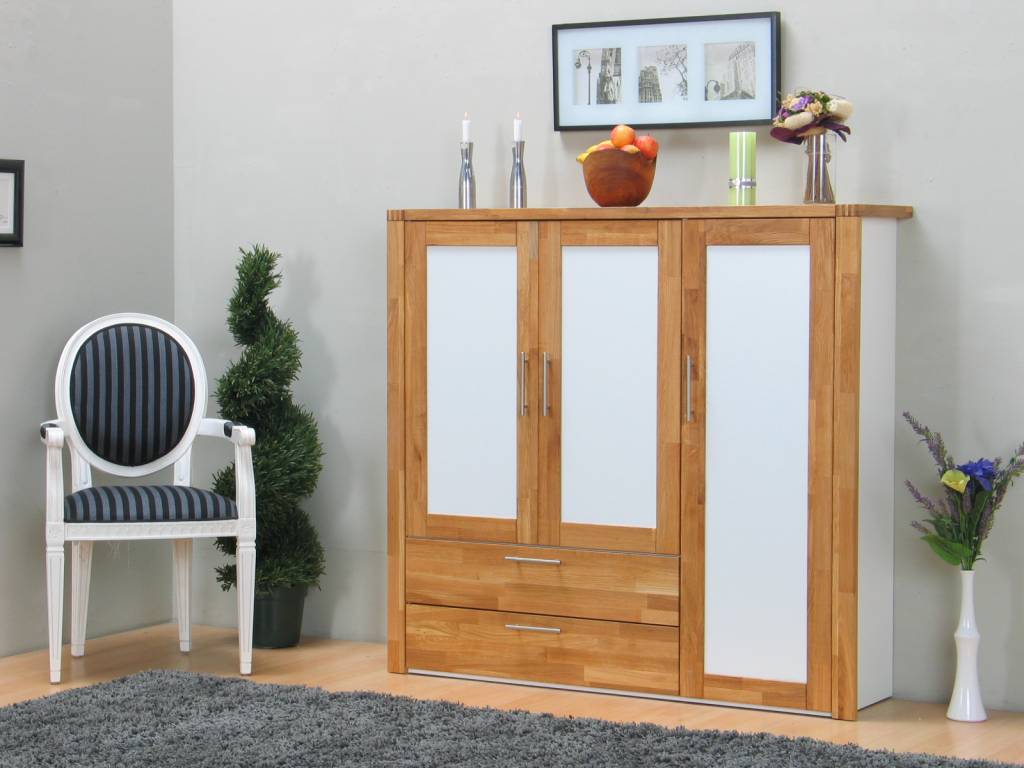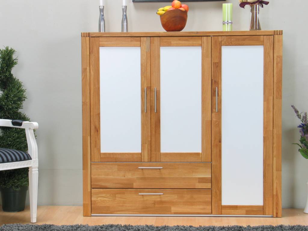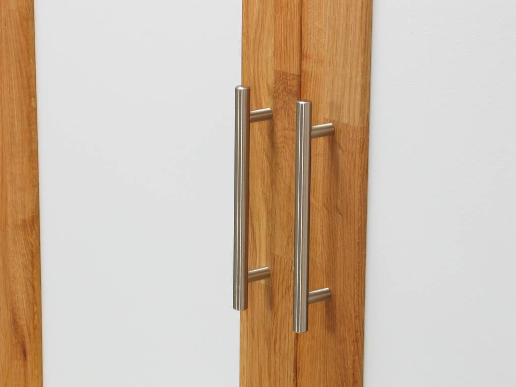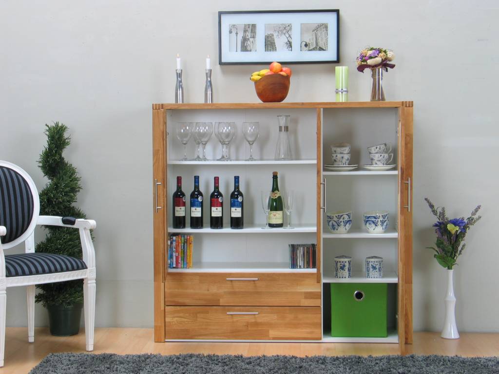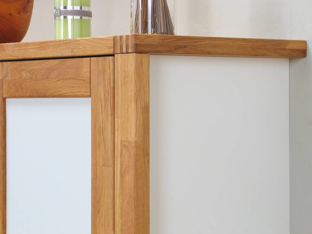 Fraaie gesloten wandkast, bijvoorbeeld voor het bewaren van uw servies. Een stijlvolle kleurencombinatie: wit in combinatie met massief eiken. Staat deze kast binnenkort bij u thuis? Bestel hem nu!