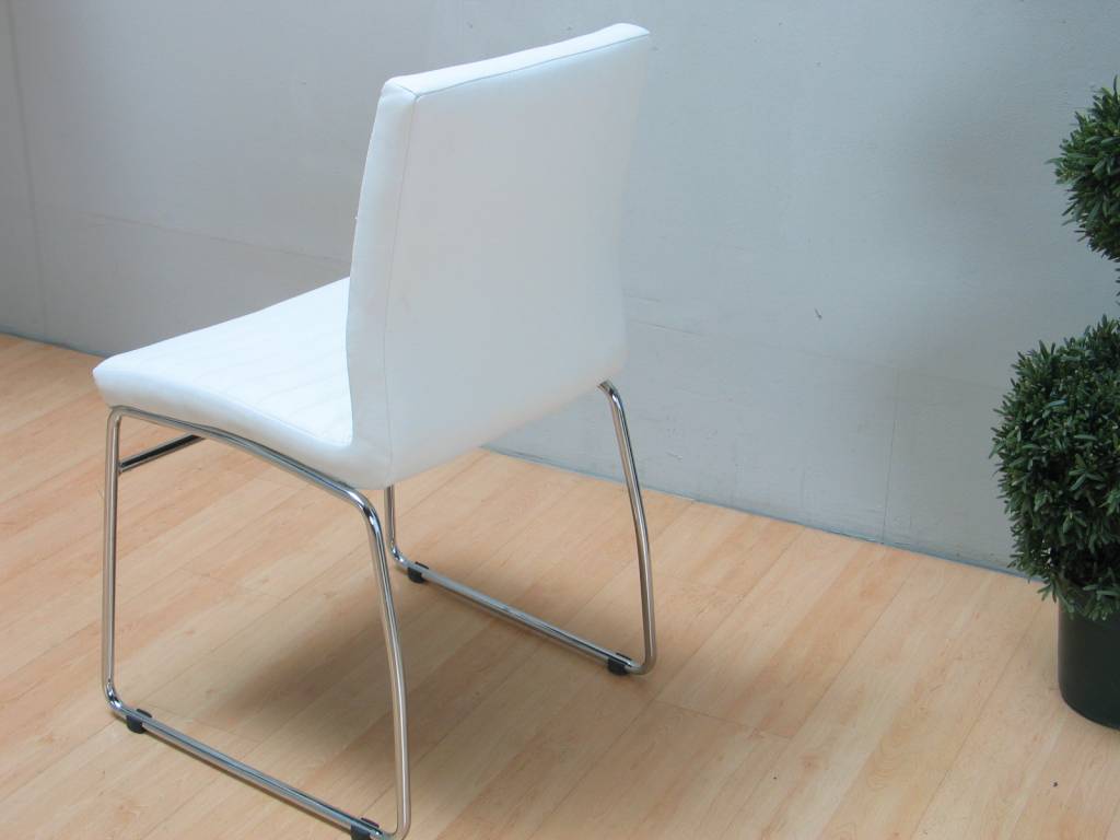 - Stoel met verchroomd metalen onderstel en wit PU-leder bekleding