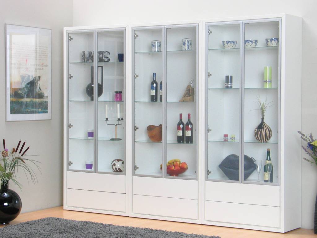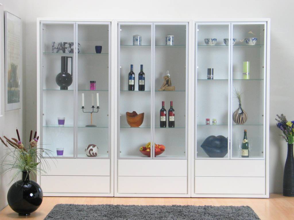 Setaanbieding: maar liefst 3 witte vitrinekasten Quadra. Samen maken deze vitrinekasten een fantastische vitrine wandkast, maar u kunt ze ook los van elkaar plaatsen. Deze design vitrinekasten zijn als set extra voordelig!