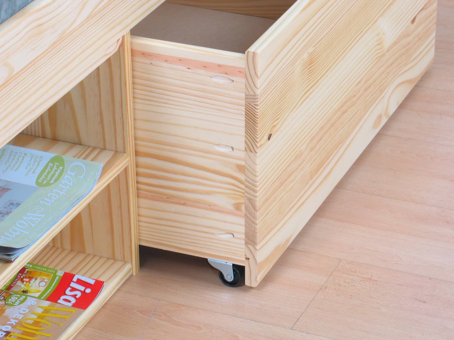 - Massief grenenhout, natuurkleurig gelakt.