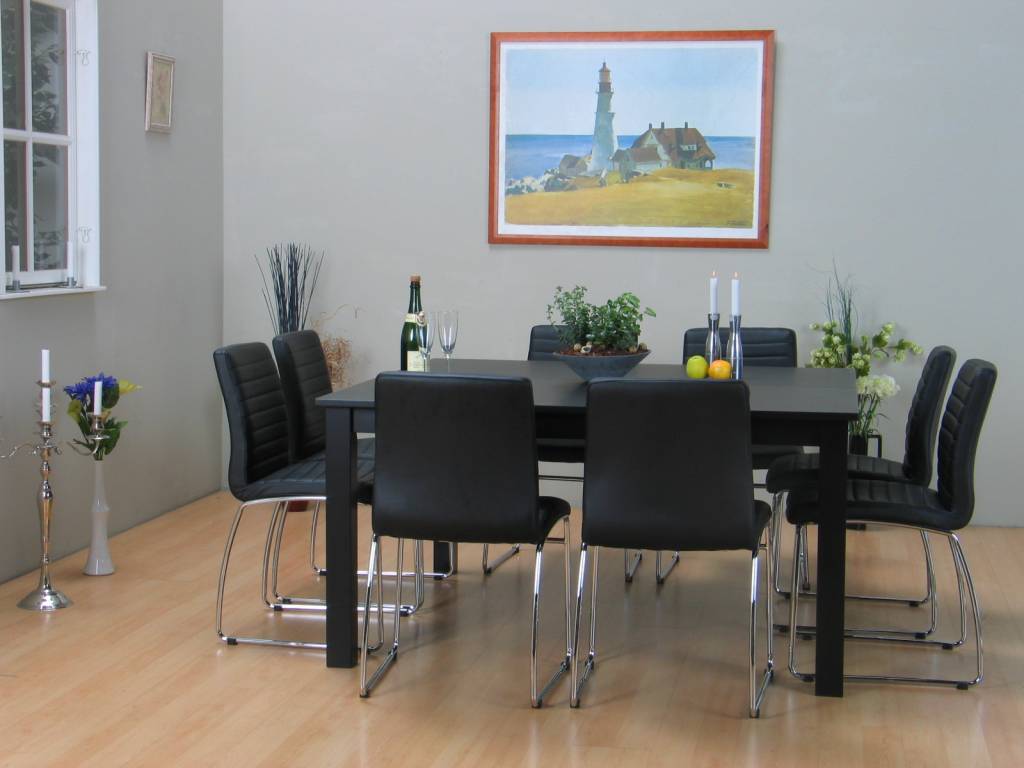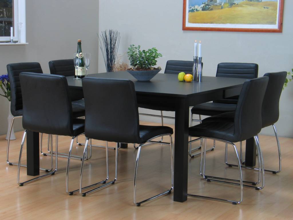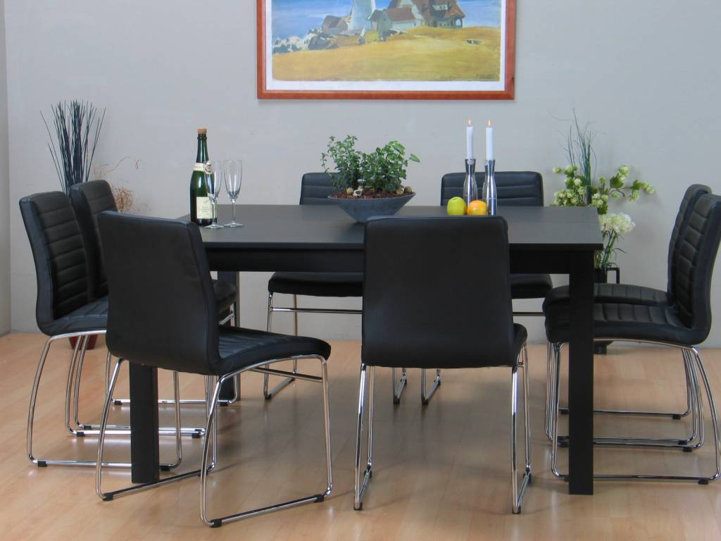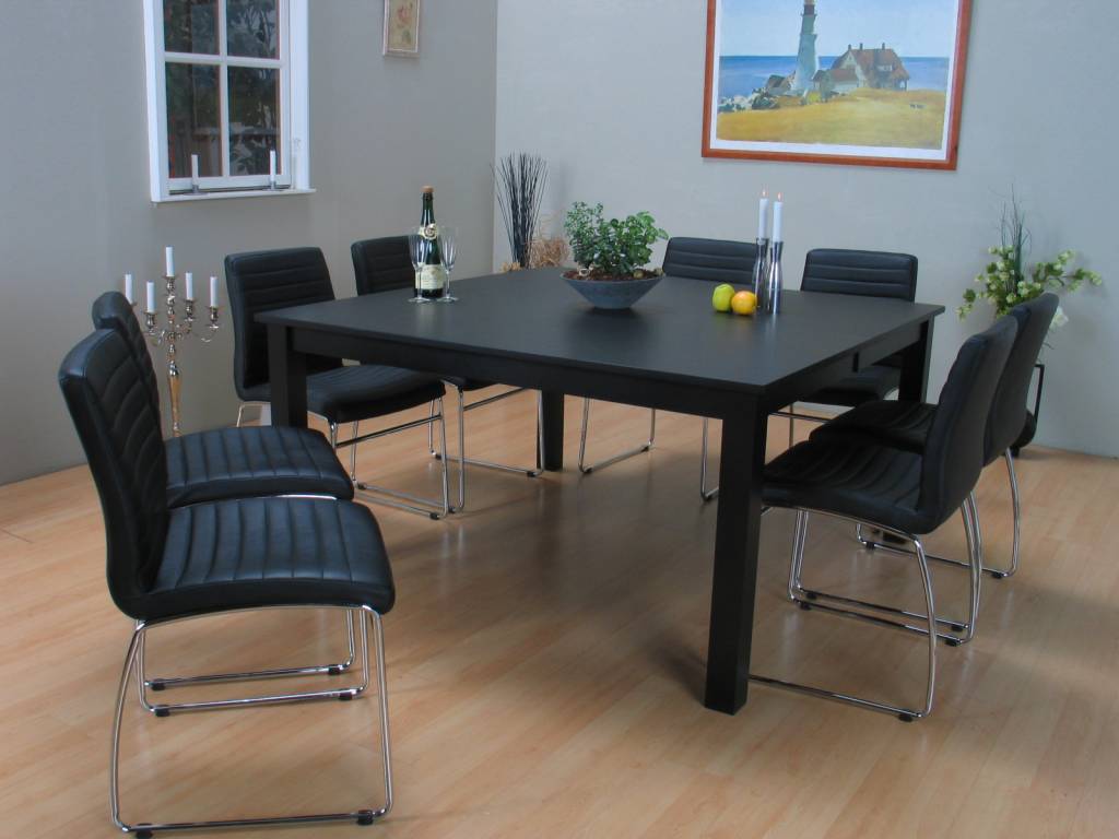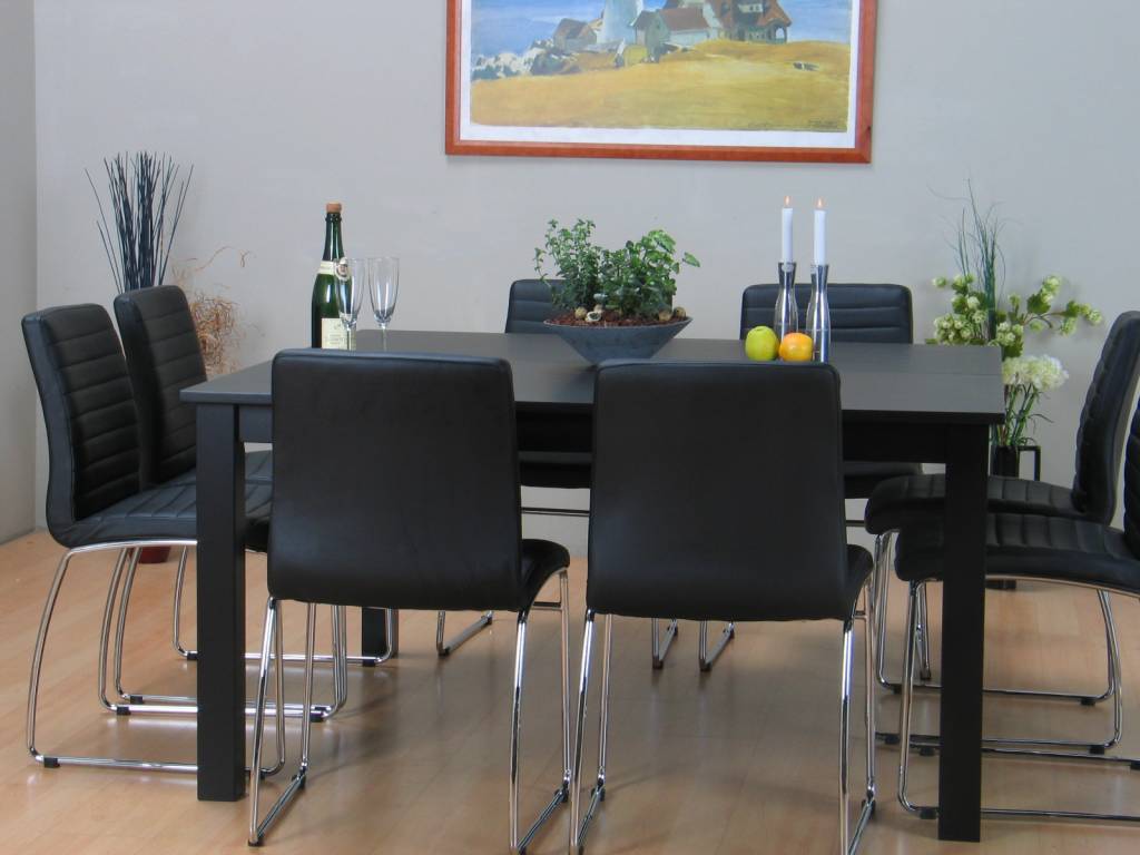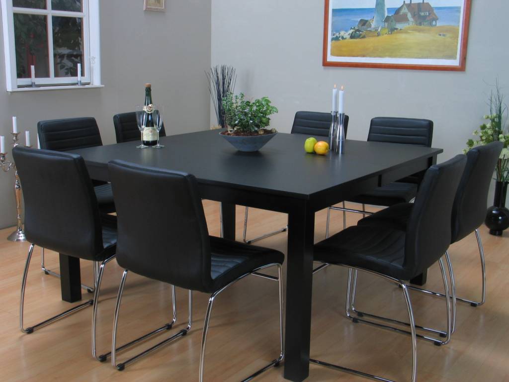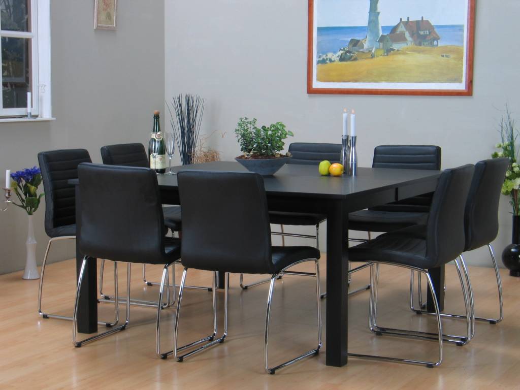 Vergaderset Denver, bestaande uit onze vierkante eettafel Sirius en 8 Denver-stoelen. Een mooie, ruime set voor in de woonkamer, keuken of als vergaderset op kantoor.