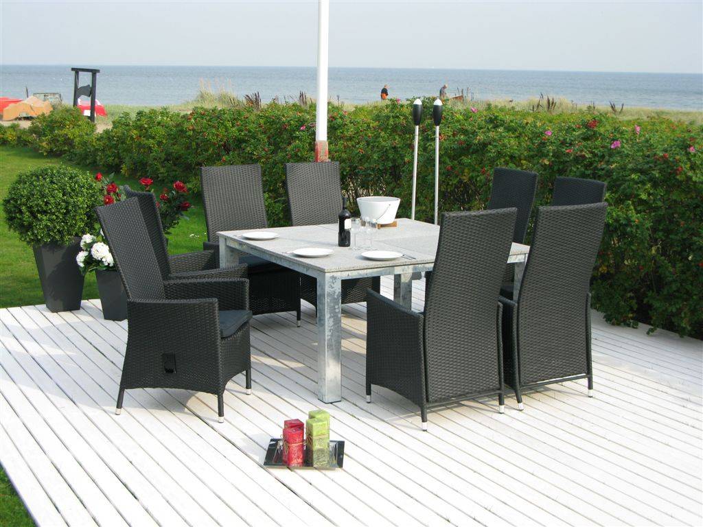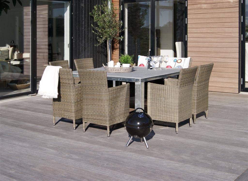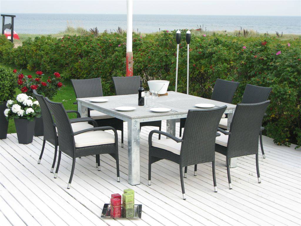 Topmeubel van Hioshop: tafel van gegalvaniseerd staal en graniet van maar liefst 150 bij 150 cm! Deze tuintafel is een absoluut pronkstuk in uw tuin.