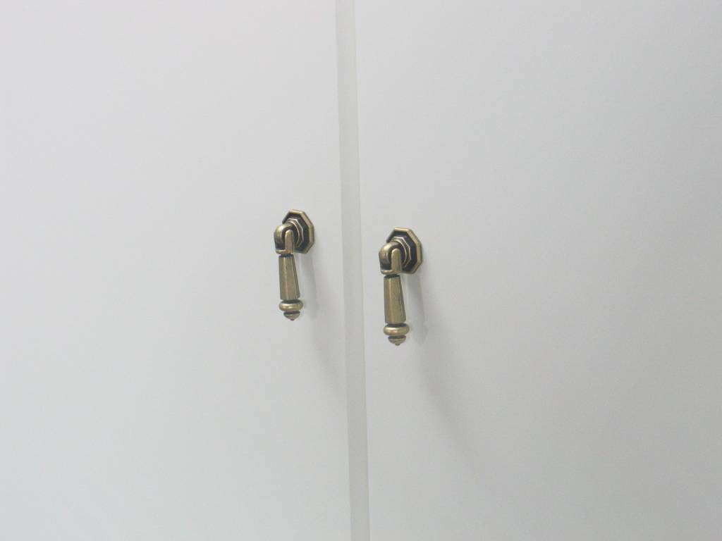 Achter de deur rechts: 1 smalle kledingstang en een bodemplaat met daaronder een smalle schuiflade