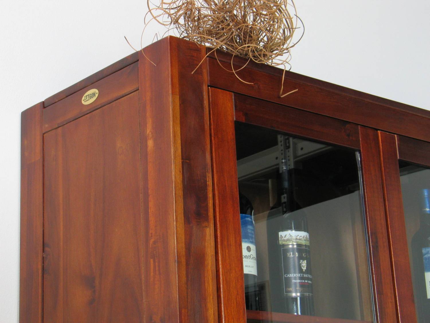 - Massief acaciahout, donkerbruin gelakt, kastinterieur en zijpanelen acacia fineer