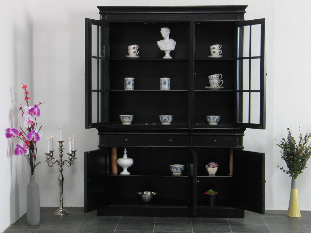 Winkelkast buffetkast vitrine met opzet antiek zwart massief hout Mozart