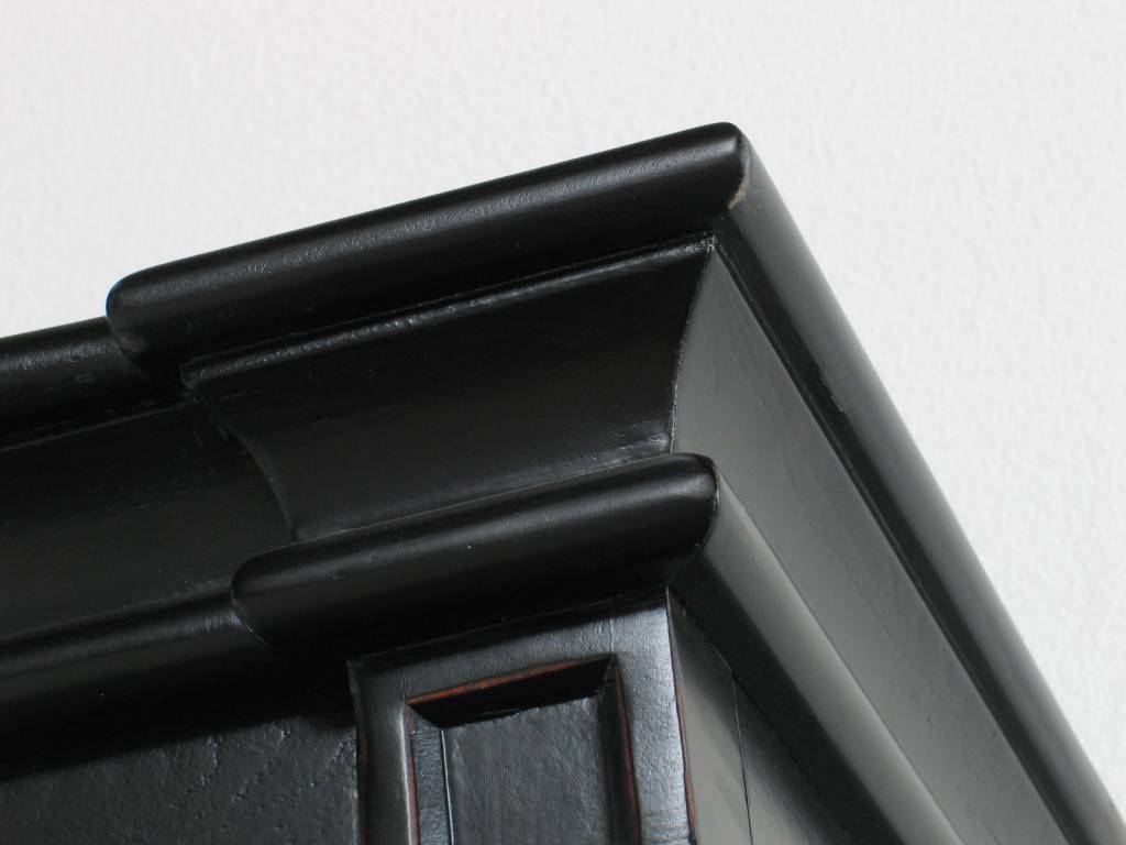 - Massief hout, zwart gelakt, antiek gepatineerd