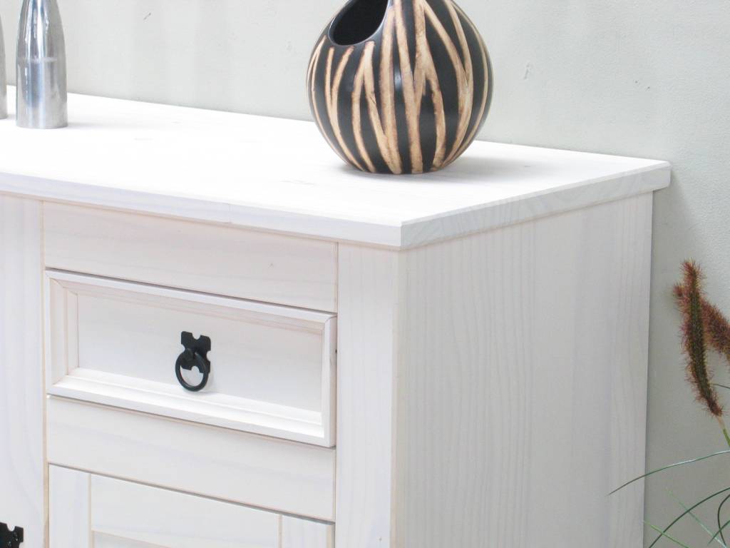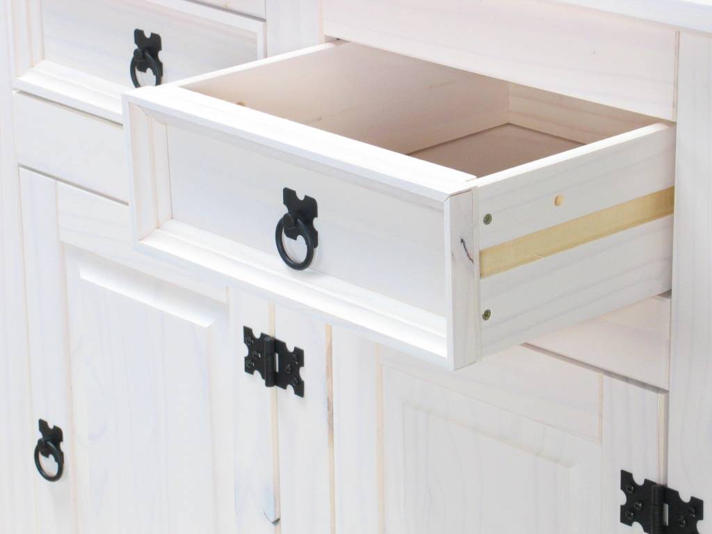 Wit dressoir New Mexico, met kenmerkend beslag, wit houten dressoir met een waxlaag voor een unieke look. De dressoirs New Mexico zijn in meerdere afmetingen verkrijgbaar en maken deel uit van de meubelserie New Mexico.