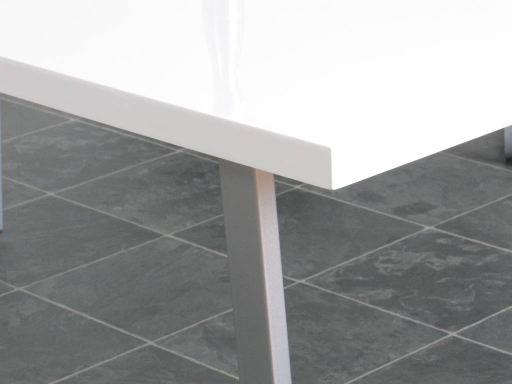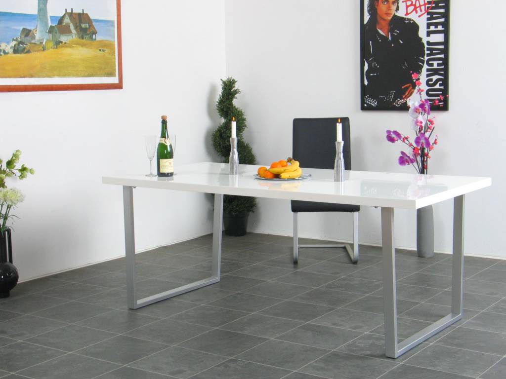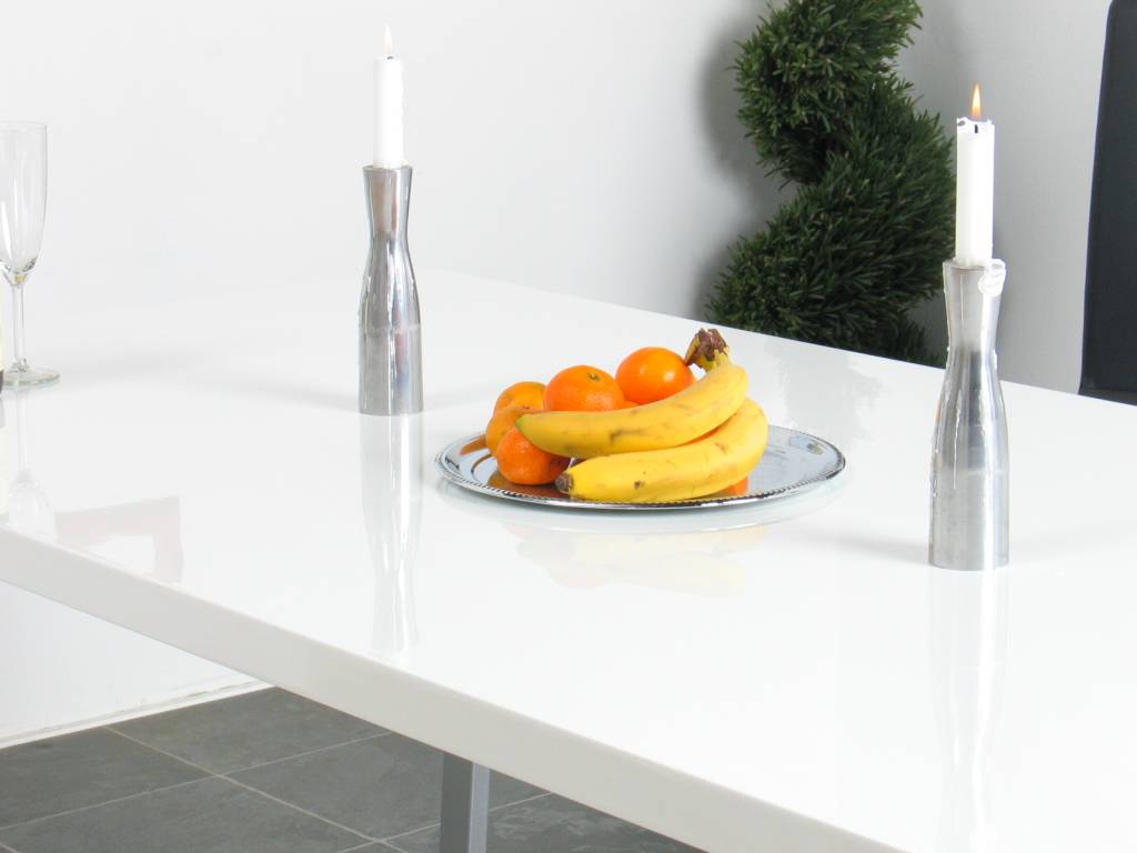 Stijlvolle eettafel, uitgevoerd in wit hoogglans, met design metalen onderstel. Past mooi bij de overige meubelen uit de gelijknamige serie Toronto, bijvoorbeeld de salontafel! Ook verkrijgbaar in zwart.