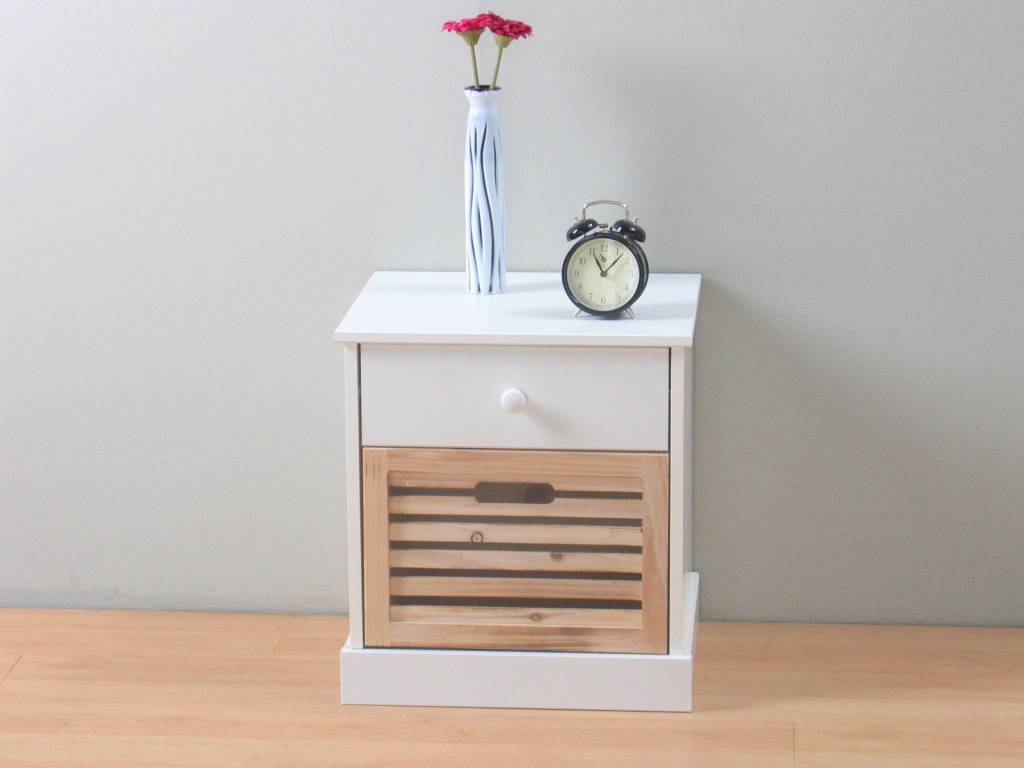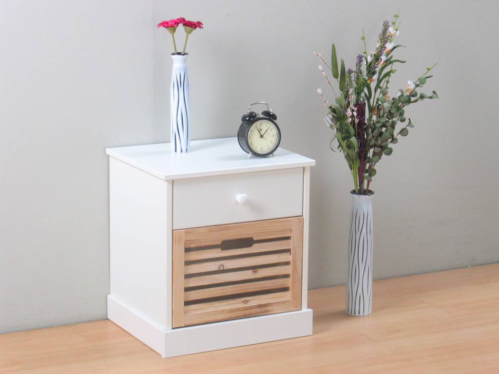 Prachtig wit nachtkastje Rianne met een lade van paulowniahout. Een stijlvol nachtkastje met 2 lades voor in uw slaapkamer. Past goed bij de overige slaapkamermeubelen uit de serie Rianne!