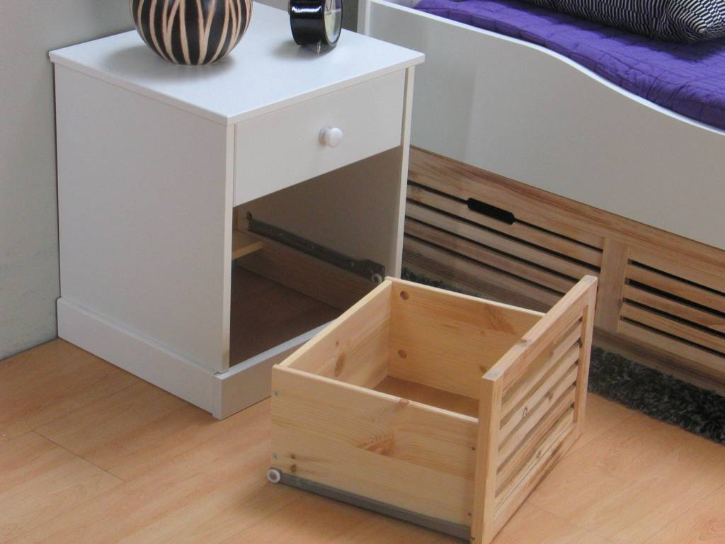 - De onderste grote lade kunt u in zijn geheel eruit nemen en heeft een houten handgreep