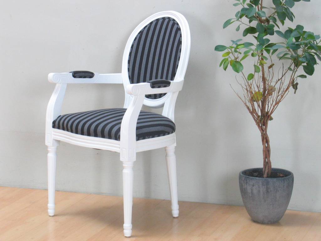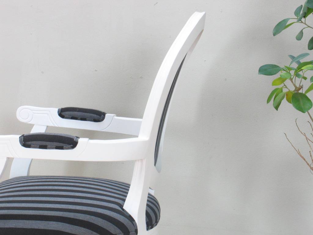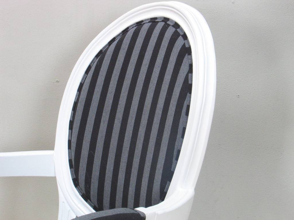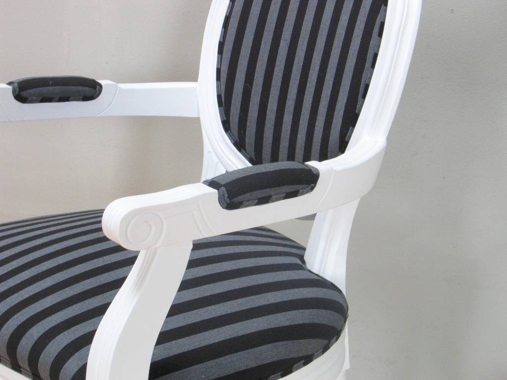Witte stoel met armleuning Rococo met zwart gestreepte bekleding
