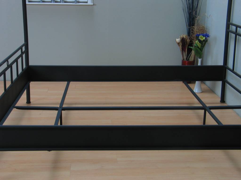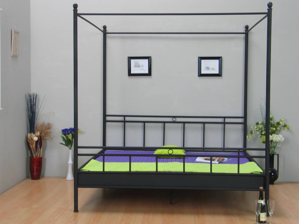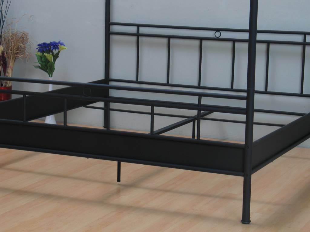 Hemelbed van metaal met zwarte laklaag. De matrasmaat van dit bed is 160 x 200. Ook verkrijgbaar in vanillewit en in andere maatvoeringen! Let op: wordt geleverd zonder matras en zonder lattenbodem.